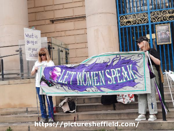 | Supporters of Posie Parker (a gender-critical and anti–transgender rights activist) at a ‘Let Women Speak’ rally, Barkers Pool | |