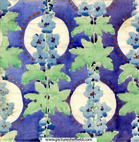 The establishment of Painted Fabrics Limited owed much to Annie Bindon Carter (1883-1969) who, in 1915, volunteered to help at the Wharncliffe War Hospital at Middlewood, Sheffield. She organised painting classes as a form of occupational therapy for soldiers who had suffered physical and psychological injuries (including amputations) during the First World War. At the end of the war Mrs Carter obtained premises at West Bar, Sheffield which were converted and equipped as workshops for a few men, with financial help from local people. After a visit from Earl Haig, the authorities realised the possibilities of employment for severely disabled ex-servicemen that the enterprise presented. In 1923, land and hutments at the old WAAC (Women's Auxiliary Army Corps) camp at Norton Woodseats, Sheffield were purchased by the United Services Fund and leased to the newly formed company Painted Fabrics Limited. Some of the huts became workshops, while others were converted to homes for some of the men and their wives and families. Original at Sheffield Archives, ref. PF/4/5/4/1. |