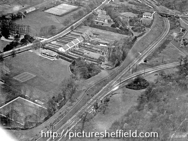 | Aerial view - Abbeydale Road South and Twentywell Lane and Railway Tracks, St. John's Church and Dore and Totley Station can be seen in background | |