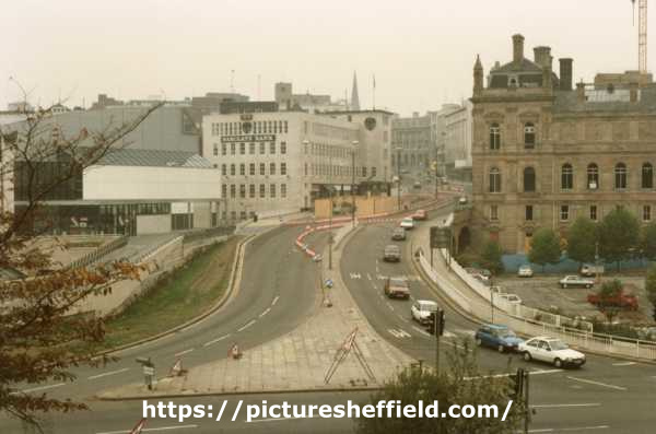 | Commercial Street from Park Square roundabout showing (left) Barclays Bank and (right) Canada House (old former Gas Company offices) | |