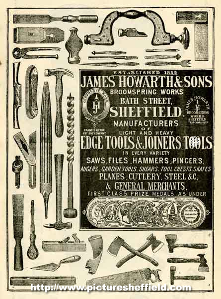 | Advertisement for James Howarth and Sons, edge tool manufacturers, Broomspring Works, Bath Street | |