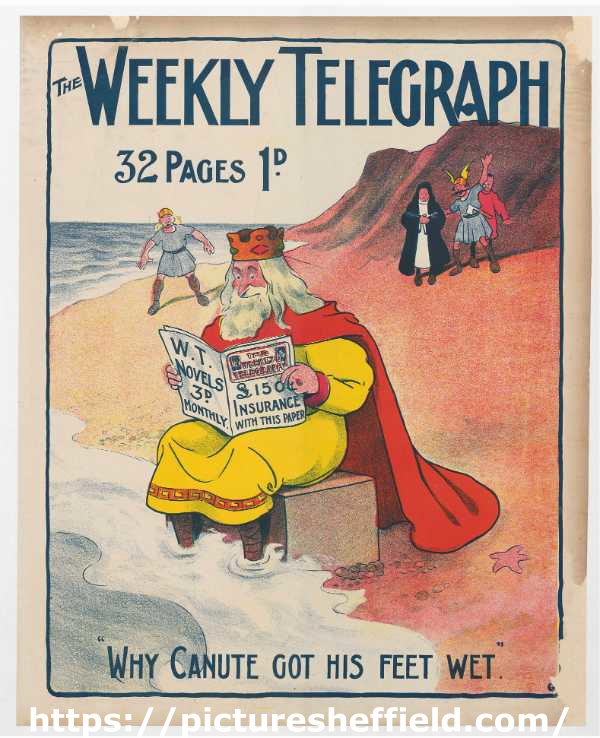 | Sheffield Weekly Telegraph poster: Why Canute got his feet wet | |