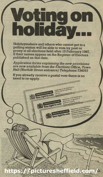 This entitlement was applicable for all elections held after 15th February 1987. From City of Sheffield News, Jan 1987 (page 3) (Sheffield Local Studies Library: 324.42 SF) |