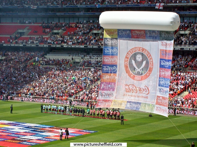 | The teams line up before the Championship play-off final between Sheffield United and Burnley at Wembley Stadium | |