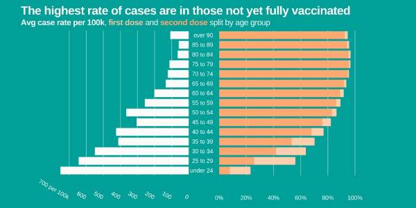 | Covid-19 pandemic: Sheffield City Council graphic - the highest rate of cases in those not yet fully vaccinated | |