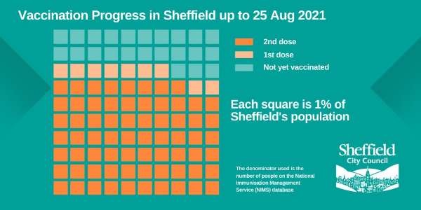 | Covid-19 pandemic: Sheffield City Council graphic - Vaccination progress in Sheffield up to 25 August 2021 | |