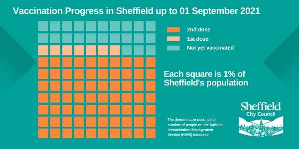 | Covid-19 pandemic: Sheffield City Council graphic - Vaccination progress in Sheffield up to 1 September 2021 | |