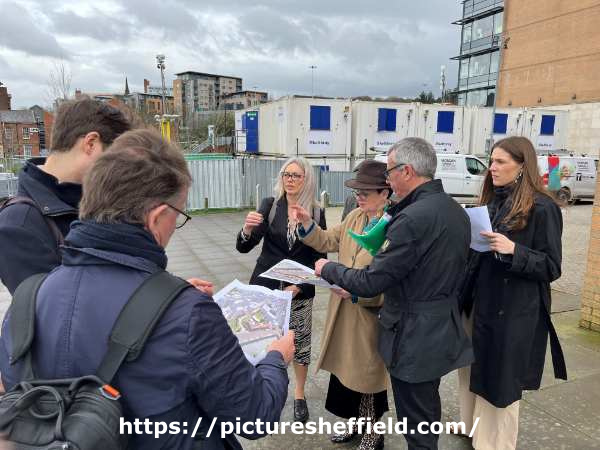 | Minister of State, Baroness Neville-Rolfe, being shown a portion of the regeneration work in Sheffield | |