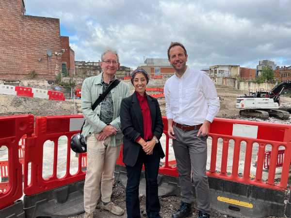 On Tuesday 27th August work starts on the long-awaited first step of putting the river Sheaf back into Sheffield as part of the City Council’s project creating a new park on the site of the former Castle Markets in Castlegate. The River Sheaf has been covered over at Castlegate for more than a century. Next week, work starts to open it up again. It’s part of the redevelopment of the former Castle Market site which will include the remains of the 12th century Sheffield Castle going on public display. Left to right: Simon Ogden, Abtisam Mohamed, Labour MP for Sheffield Central, and Councillor Ben Miskell, Chair of the Transport, Regeneration and Climate Policy Committee. Image from Sheffield City Council's X (Twitter) account (reposted from Abtisam Mohamed’s Twitter account). |