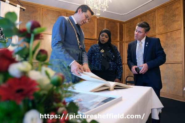 | Visit to Bochum, Germany showing (left) Oberburgermeister Thomas Eiskirch, Bochum (centre) Councillor Safiya Saeed, Lord Mayor of Sheffield and (right) Nik Hamilton, international lead, Sheffield City Council | |