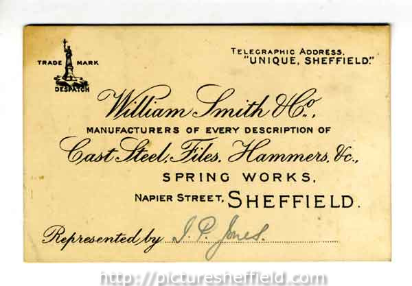 | William Smith and Company, Spring Works, Napier Street, Sheffield - business card, c. 1890 | |