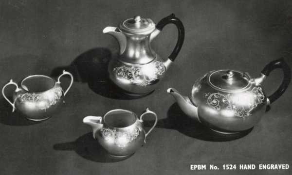 | Hand engraved tea and coffee service, E. Leclere, electro plate manufacturers, No. 56 Howard Street | |