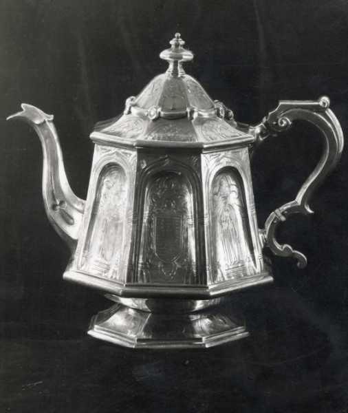 | Tea pot, E. Leclere, electro plate manufacturers, No. 56 Howard Street | |