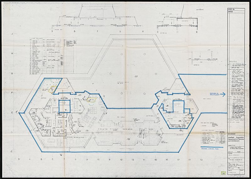 | Sheffield Town Hall Extension (known as the Egg Box (Eggbox)), Norfolk Street, third floor plan, proposed new restaurant and kitchen layout | |