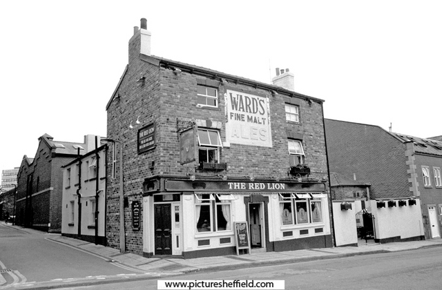 | Red Lion public house, No.109 Charles Street at junction with (left) Eyre Lane. | |