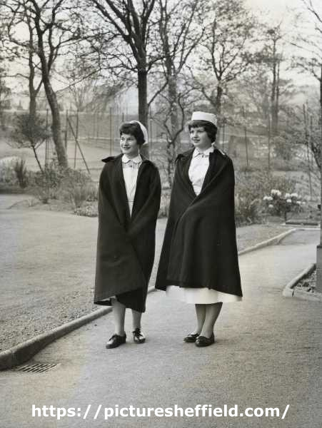 | Nurses outside Nurses Home and tennis courts, City General Hospital (later known as Northern General Hospital), Fir Vale, c.1960s | |