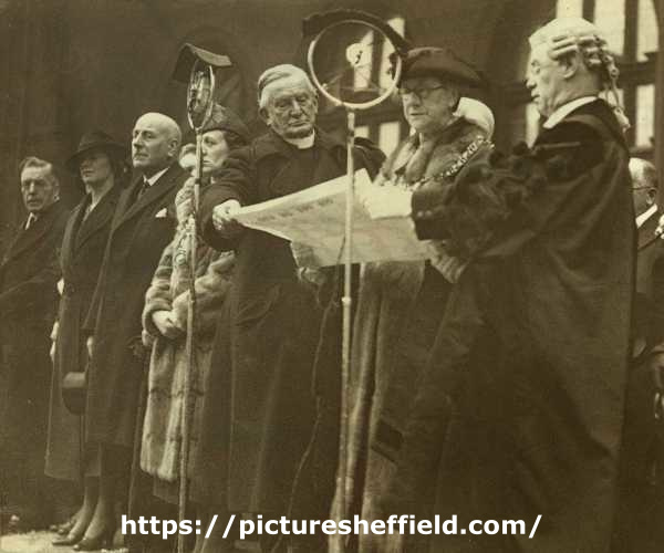 ![Proclamation of [accession of] King George VI outside Town Hall, Pinstone Street showing (2nd right) Lord Mayor, Ann Eliza Longden](https://www.picturesheffield.com/imagefiles/jpgl_sheffield3//ov00116.jpg)