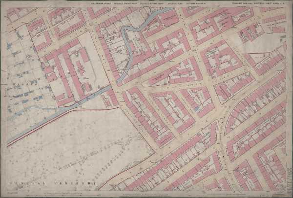 Survyed 1889. This map features: Top left: Stalker Lees (in margin), Stanley Villas, Broom Oak Villas, Ecclesall Road, Victoria Parade, Plumpton Street, Pear Street West, Pomona Street, Havelock Place, Broomhall Meadow Gardens (with greenhouses), [James Chesterman and Co Ltd., merchants and manufacturers], Bow Works (land chains, tapes, etc) (on Pomona Street), Porter Brook, [J. and H. Morewood, auger manufacturers], Buffalo Horn Works (on Soho Street), [John Shaw Ltd., manufacturers of wire rope, etc], Yorkshire Wire Rope and Fencing Works (on Soho Street). Top right: St Matthias's Church (on Summerfield Street), Summerfield Street, [S. and J. Kitchin], Soho Cutlery Works (on Summerfield Street), Soho Street, Napier Street, Gilcar File works (on Napier Street), St. Matthias’s school, Parliament Street, Summerfield Works (building materials and fittings) (on Napier Street), Solferino Street, Crown Inn, T. E. Kitchin and Co., steel, file and hammer manufacturers], Derwent Steet Works (in margin) [on Soho Street], [Askham Brothers and Wilson Ltd., steel manufacturers], Yorkshire Steel Works (on Soho Street), [Askham Brothers and Wilson Ltd., steel manufacturers], Crucible Steel Foundry (on Napier Street), [John Munks and Son], Norfolk Works (joiners tools, etc) (on Napier Street), [William Smith and Company], Spring Works (steel and files) (on Napier Street), Renton Street (in margin), Napier Hotel (public house), [?Charles Edward Nixon, silversmith], St Wolfran’s Works (silver and electro plate) (on Napier Street), [Charles Henry Hattersley, manufacturing silversmith], Snider works (sporting requisites, etc) (on Napier Street), Mill Cottage (in margin). Bottom left: General Cemetery. Bottom Right: Montague Street, Cemetery Road, Pembroke Street, Sunderland Street, [Cemetery Road] Congregational Church, Diana Terrace, Pearl Street, Tramway, Washington Arms (public house), Washington Road, Mackenzie Street, Langdon Street (in margin), Lansdowne Road, Franklin Street, Ashley Road, Mount Street (in margin), Post office (junction of Mackenzie Street and Washington Road).