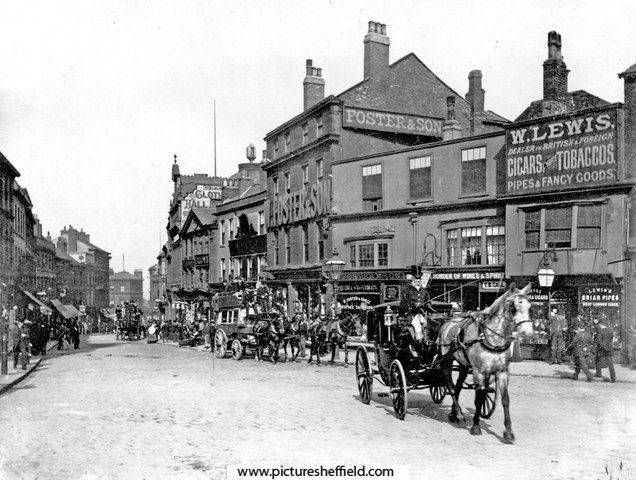 | High Street from 'Coles Corner', before road widening, including No. 6 William Lewis, tobacconist, No. 8 White Bear public house, Nos. 10 - 14 William Foster and Son Ltd., tailors | |