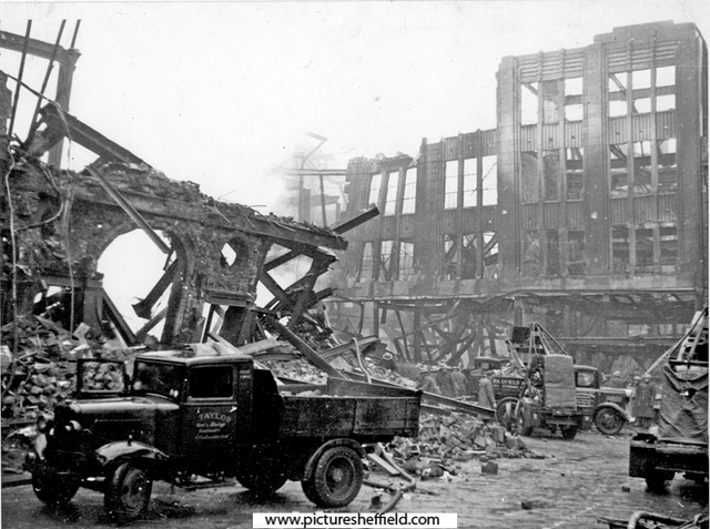 | Marples Hotel, No. 4 Fitzalan Square and C and A Modes Ltd., Nos. 59 - 65 High Street after air raid | |