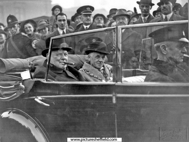 | Official visit of W.S. Churchill, with Luther Frederick Milner, Lord Mayor | |
