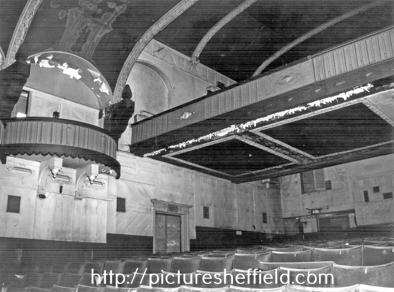 | Auditorium showing the private boxes and balcony, The Attercliffe Pavilion Cinema, Attercliffe Common | |