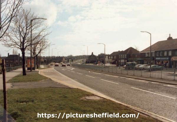 | Ridgeway Road looking towards junction with Hollinsend Road showing (right) No.196 NSS Newsagents | |