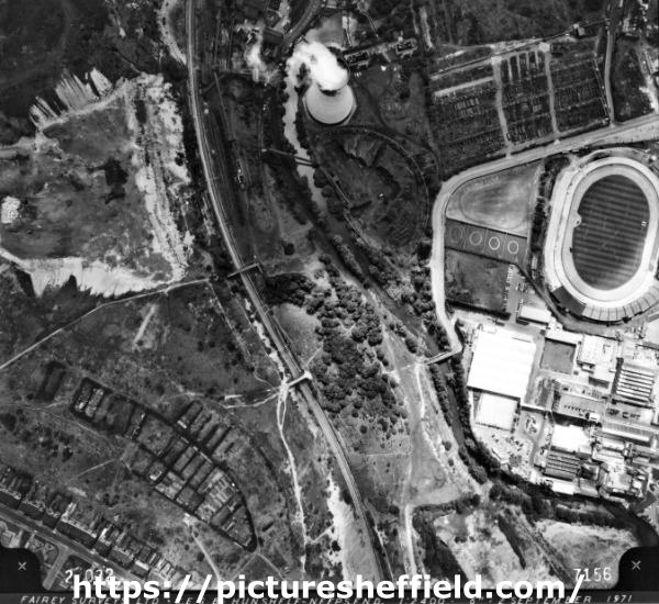 | View of (top left) Neepsend Power Station showing (centre right) Owlerton Stadium, Livesey Street and George Bassett and Co. | |