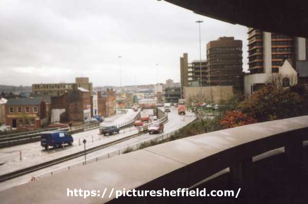 | Arundel Gate from Sheffield Register Office looking towards Furnival Square showing (right) AEU House and Redvers House, offices | |