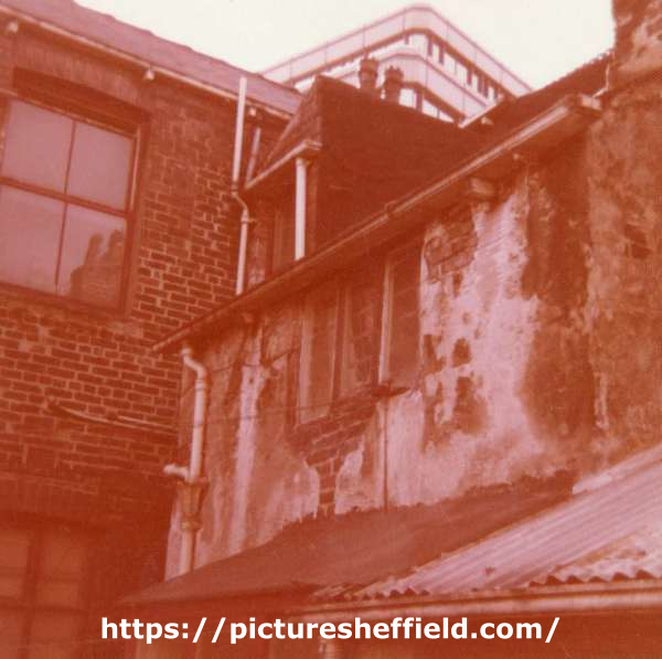 Visible in background, above the roof line are the upper stories of Fountain Precinct, Balm Green. Previously an unidentified Picture Sheffield image, recognised by members of Sheffield History (www.sheffieldhistory.co.uk) whose help is gratefully appreciated. |