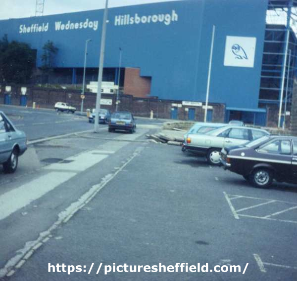 | Junction of (foreground) Herries Road and (centre) Penistone Road North showing Sheffield Wednesday F.C.'s Hillsborough football ground | |