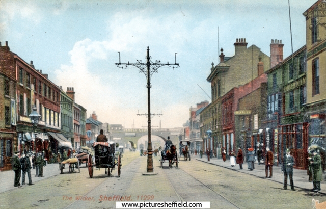 | Streetscene in the Wicker showing No. 26, Thomas Nixon and Sons, pawnbroker (extreme right), No. 28 Crown Inn (right) | |