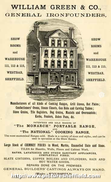 | Advertisement for William Green and Co., ironfounders, Nos.111-115 West Bar (showrooms and warehouse) | |