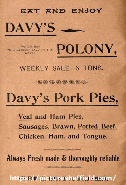 ![Advertisement for Davy's polony [probably Arthur Davy and Sons Ltd., provision merchants]](https://www.picturesheffield.com/imagefiles/jpgl_sheffield3//y15105.jpg)