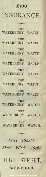 ![Advertisement for The Waterbury watch, [unidentified shop], High Street](https://www.picturesheffield.com/imagefiles/jpgl_sheffield3//y15434.jpg)