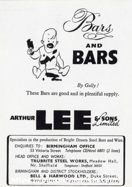 Original at Sheffield Local Studies Library: Arthur Lee and Sons, examples of advertisements 338.4 SSTF (207 014 022). |