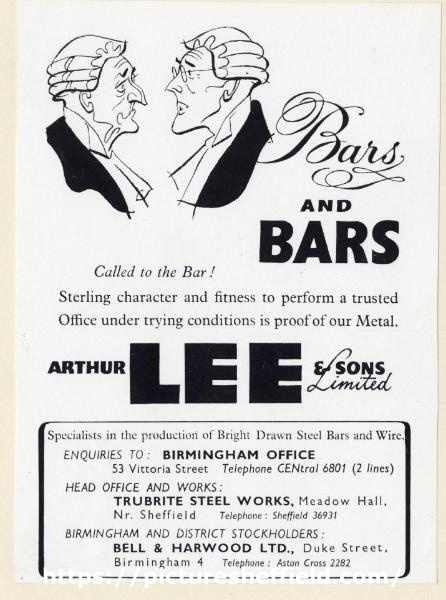 Original at Sheffield Local Studies Library: Arthur Lee and Sons, examples of advertisements 338.4 SSTF (207 014 022). |