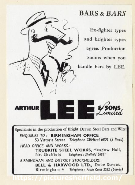 Original at Sheffield Local Studies Library: Arthur Lee and Sons, examples of advertisements 338.4 SSTF (207 014 022). |