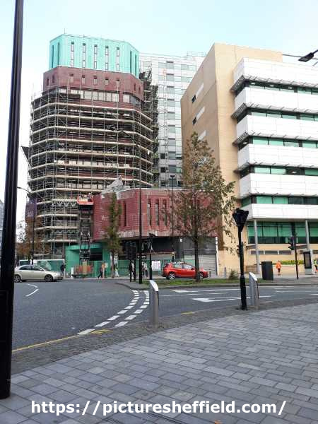 | Junction of Arundel Gate and Furnival Square showing (left) AEU House and (right) Derwent House | |