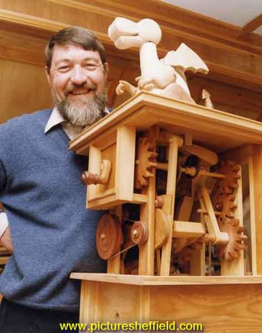 | Phil Lockwood with a wooden automotan he made for the Royal Hallamshire Hospital Day Care Centre | |