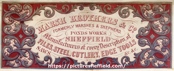 ![Label for Marsh Brothers and Co. [Ltd.] (formerly Marshes and Shepherd), Ponds Works, [Shude Lane], Sheffield, manufacturers of every description of files, steel, cutlery, edge tools [and] saws, c.1876](https://www.picturesheffield.com/imagefiles/jpgl_sheffield3//arc08013.jpg)