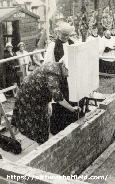 | Laying of foundation stone by Mrs Norah Boot JP and outdoor ceremony for new Parish Hall, All Saints C. of E. Church, Ecclesall Road South | |