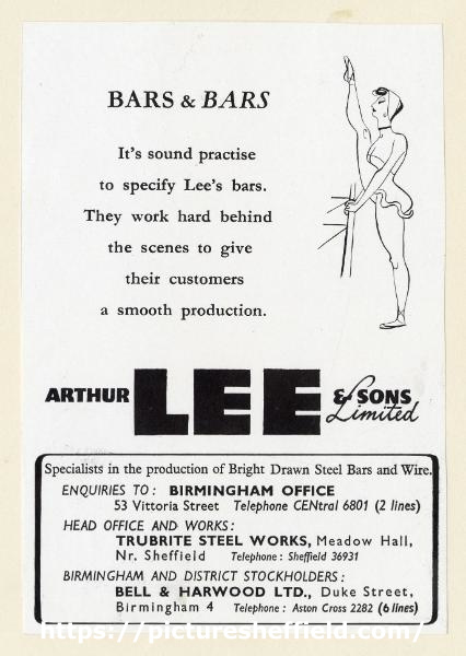 Original at Sheffield Local Studies Library: Arthur Lee and Sons, examples of advertisements 338.4 SSTF (207 014 022). |