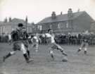 R. Lee outnumbered 3 to 1 during a second half attack in the Amateur League final, Sheffield Rovers FC v. Oak Street FC at the Brunswick ground, Woodhouse, [1950]