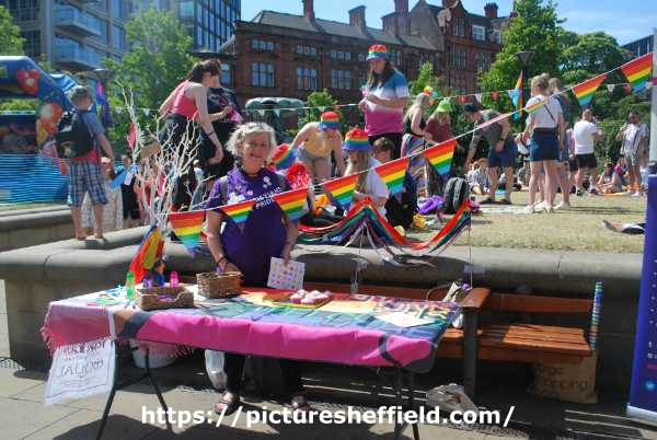 | Christians at Pride stall at Pinknic, 'Sheffield's largest city centre LGBT family event', Peace Gardens | |