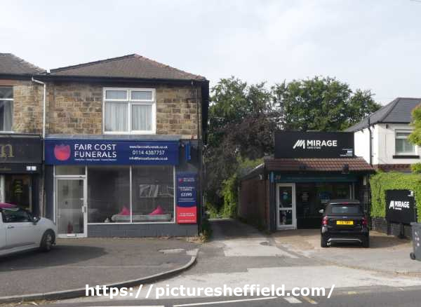 | Handsworth Road showing No. 286 Fair Cost Funerals, funeral directors and No. 284a Mirage Vape Store | |