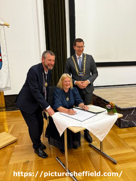 | Visit of Sheffield Lord Mayor, Councillor Colin Ross (1st left) and Lady Mayoress, Mrs Ross (seated) to Bochum, Germany | |