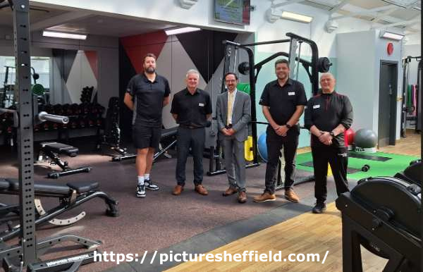 | City Council Everyone Active staff and (centre) Councillor Kurtis Crossland following the reopening of Heeley Pool and Gym, Broadfield Road | |