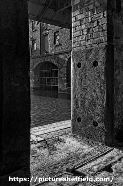 | Terminal Warehouse viewed from a loading bay, Sheffield Canal Basin (later Victoria Quays) | |