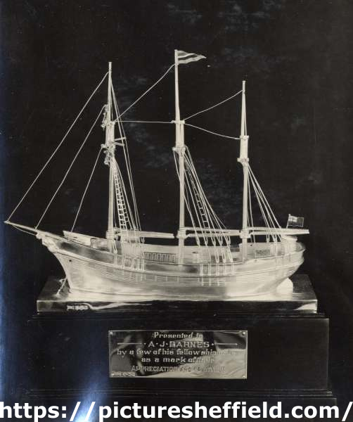 | Sterling silver model of the 'Seven Seas Schooner', made by Walker and Hall | |